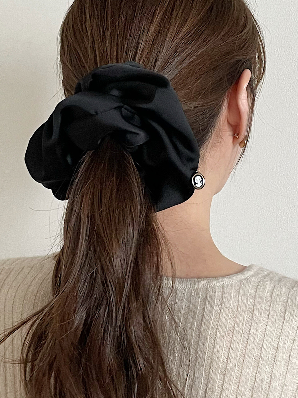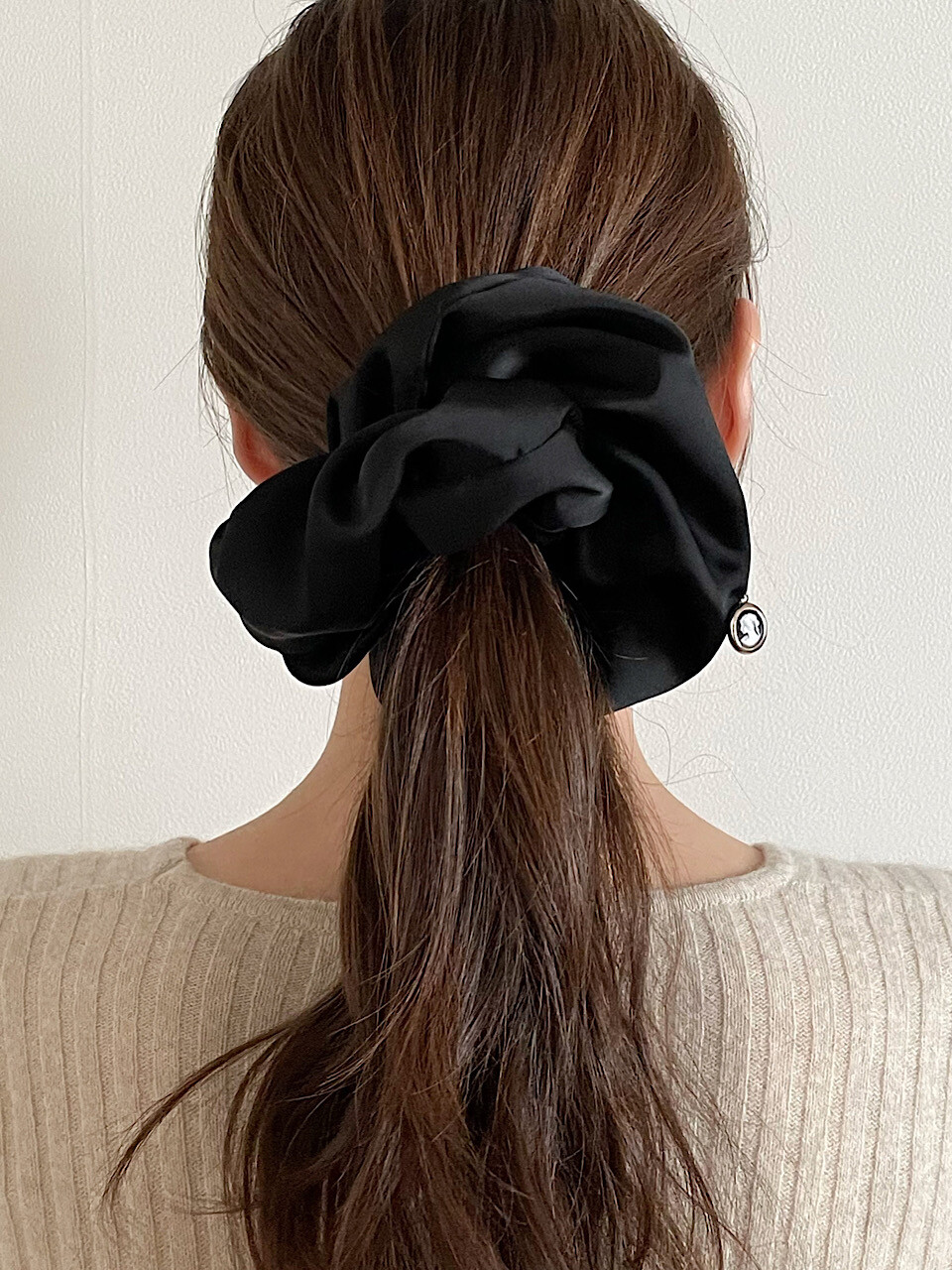 oar Satin Drop Cameo Scrunchie [Black]
