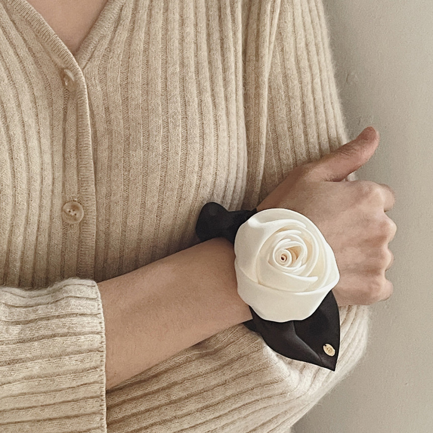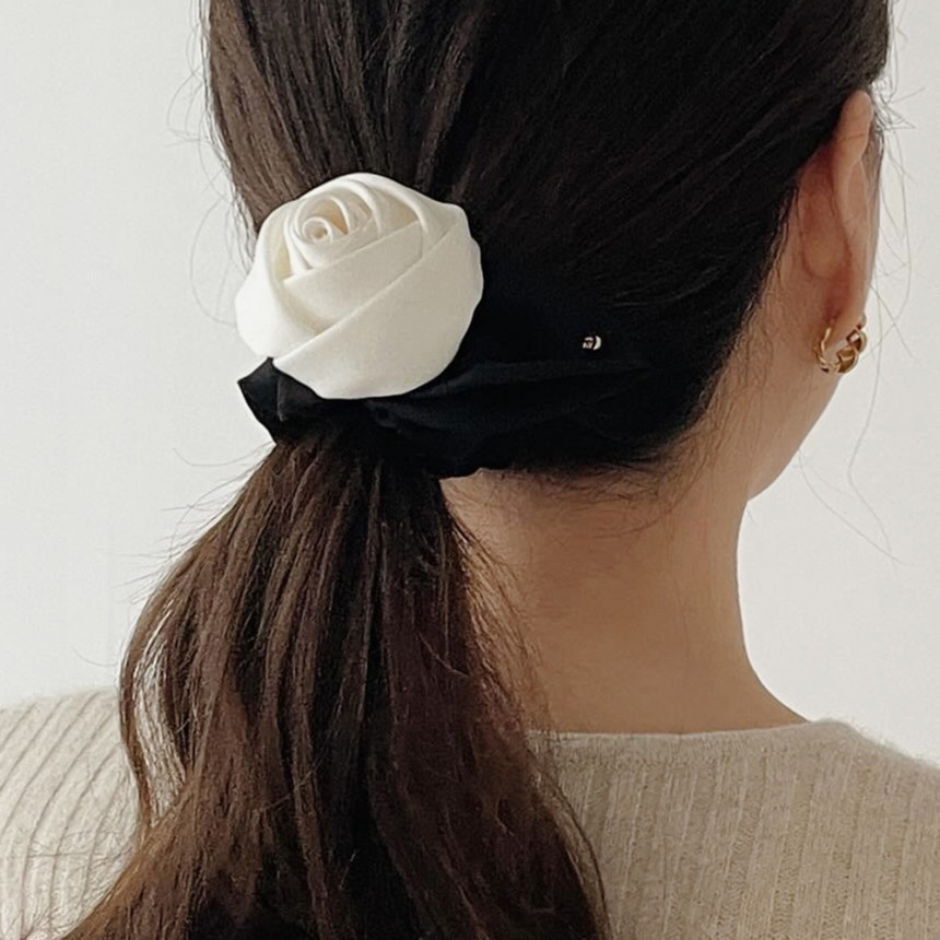 Classic Monotone Rose Hair Scrunchie (로즈 스크런치)
