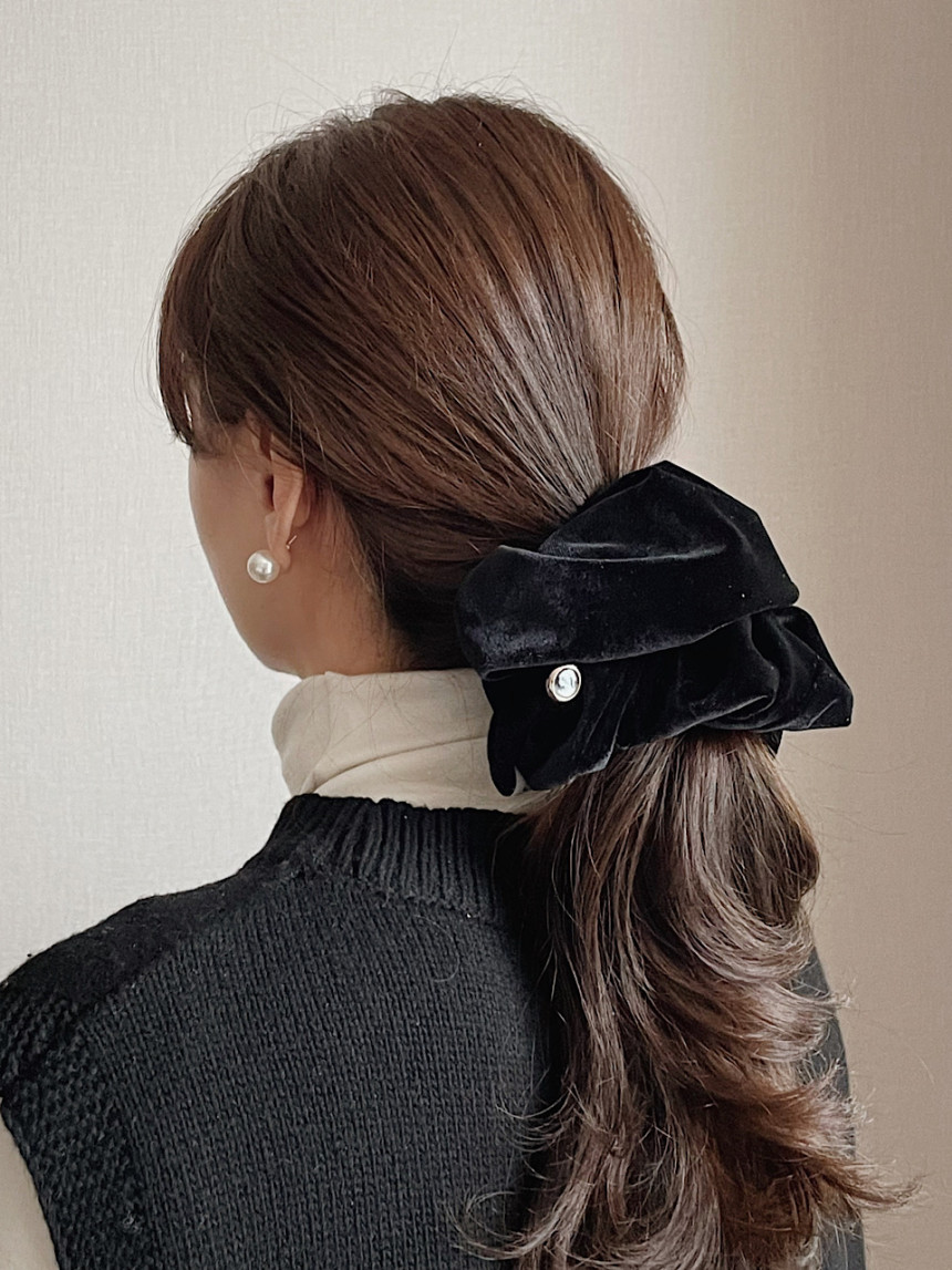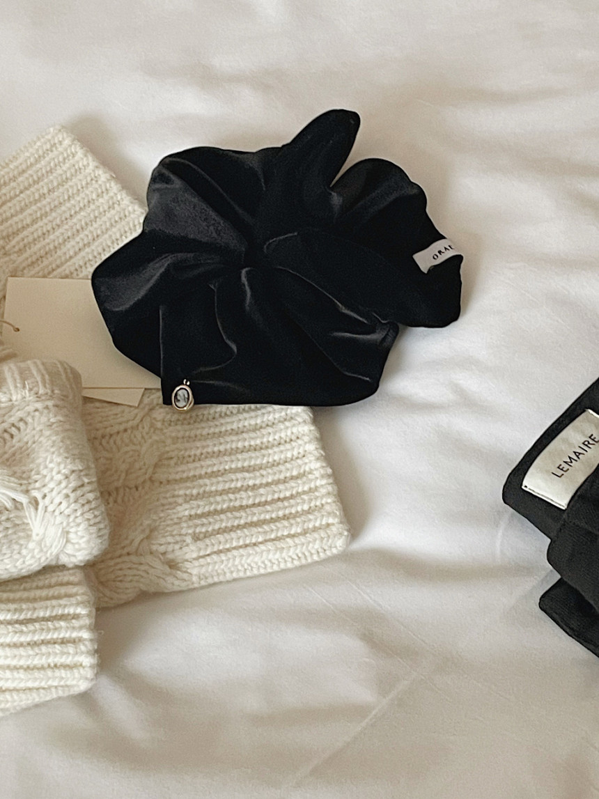 oar 빈티지 드롭 카메오 벨벳 와이드 스크런치 [블랙]