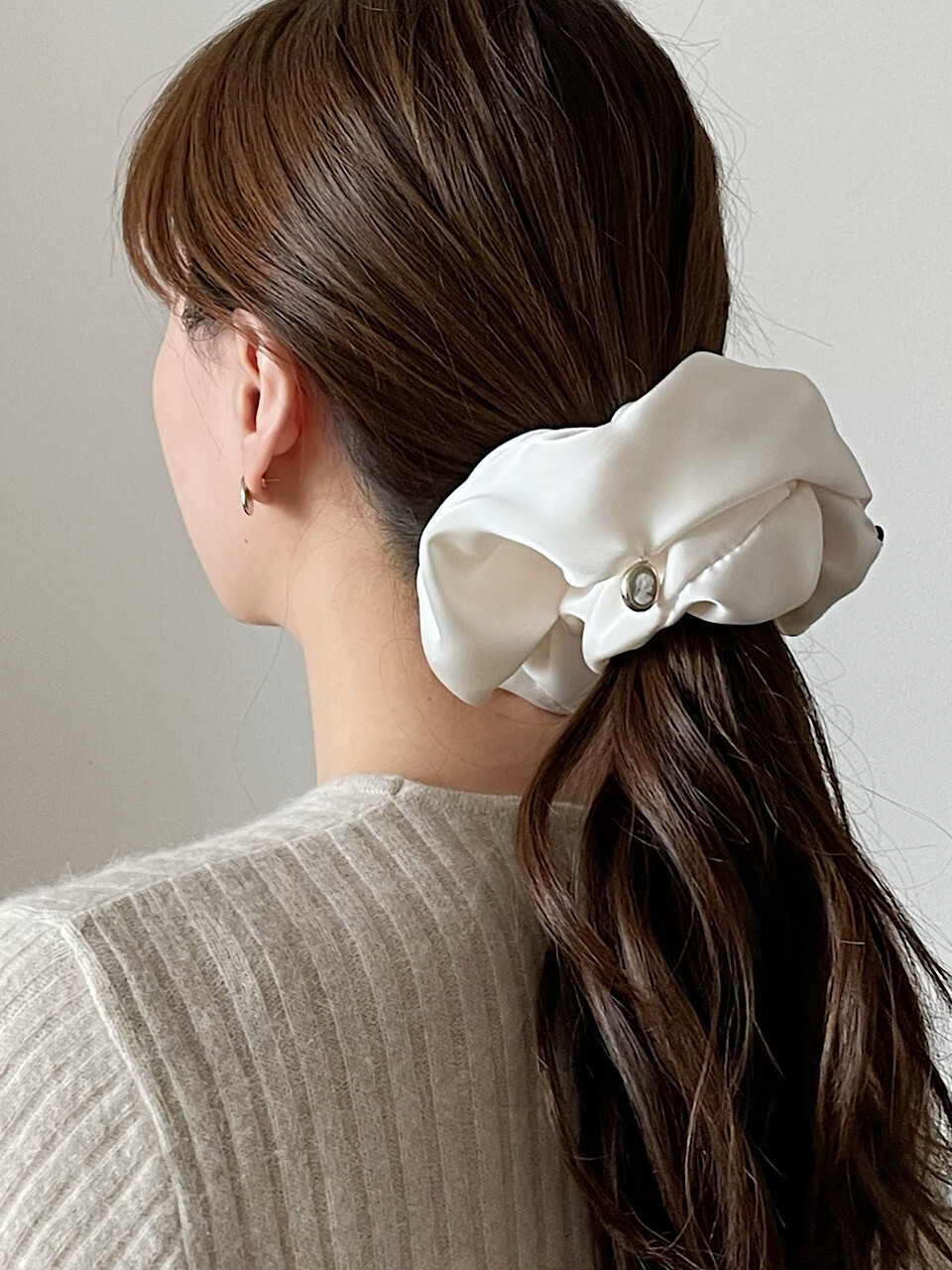 oar Satin Drop Cameo Scrunchie [Ivory]
