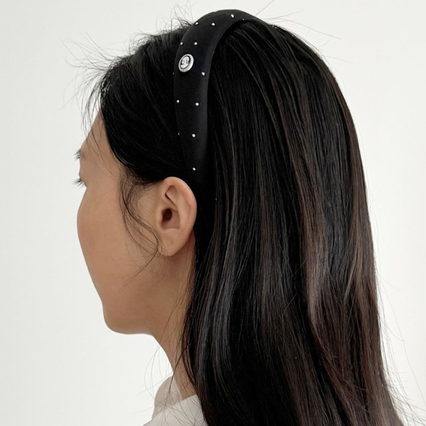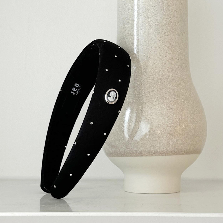 Vintage Mood Cameo Silver Dot Hairband [Black]