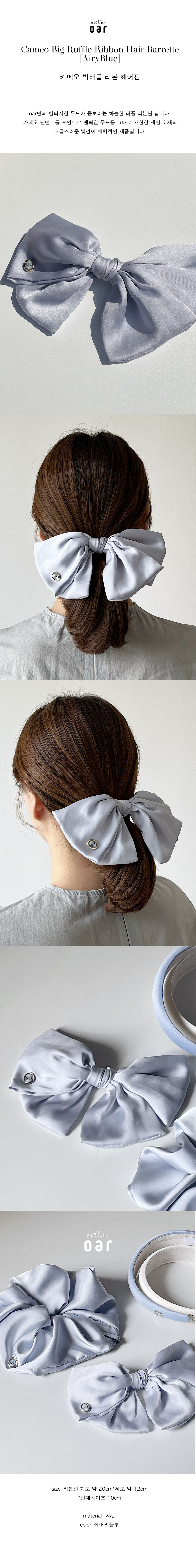 Cameo Big Ruffle Ribbon Hair Barrette [AiryBlue]