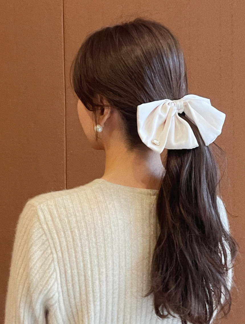 oar Cameo Big Ruffle Ribbon Hair Barrette [아이보리]