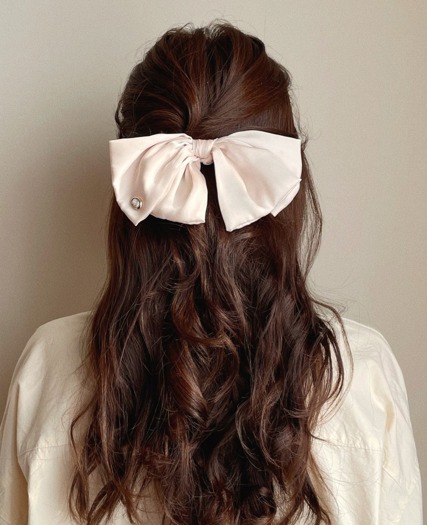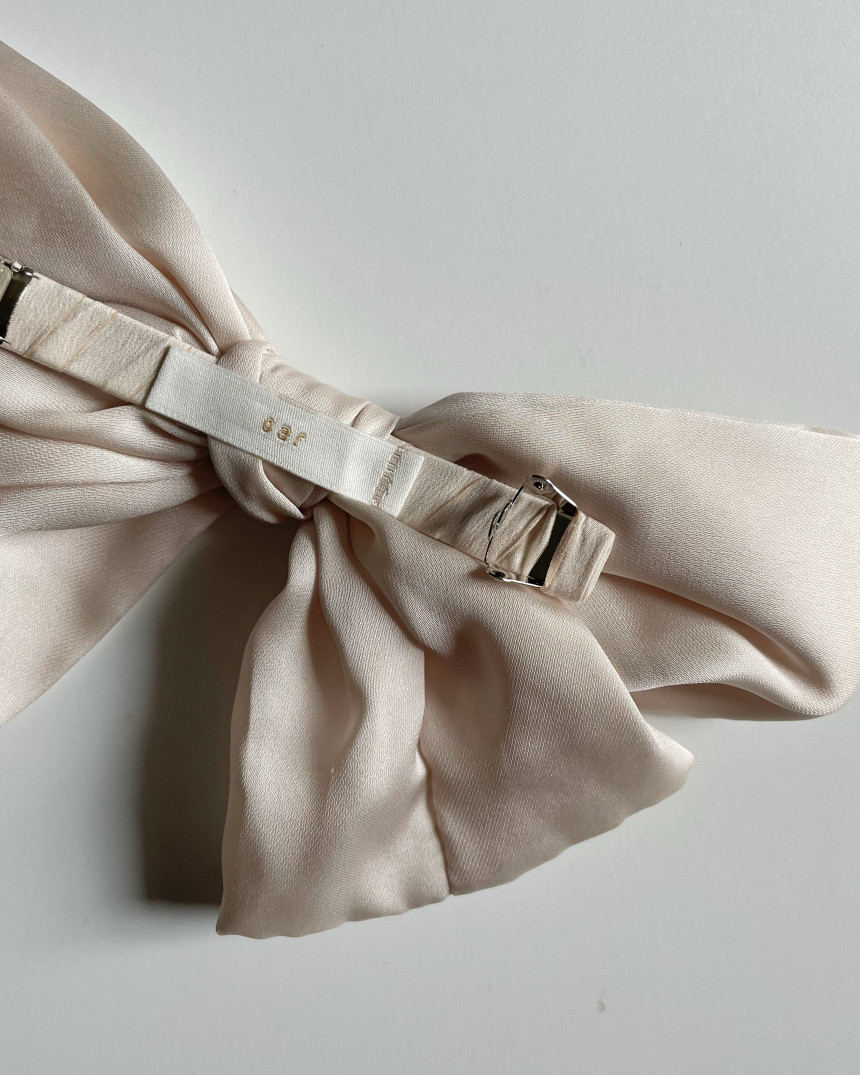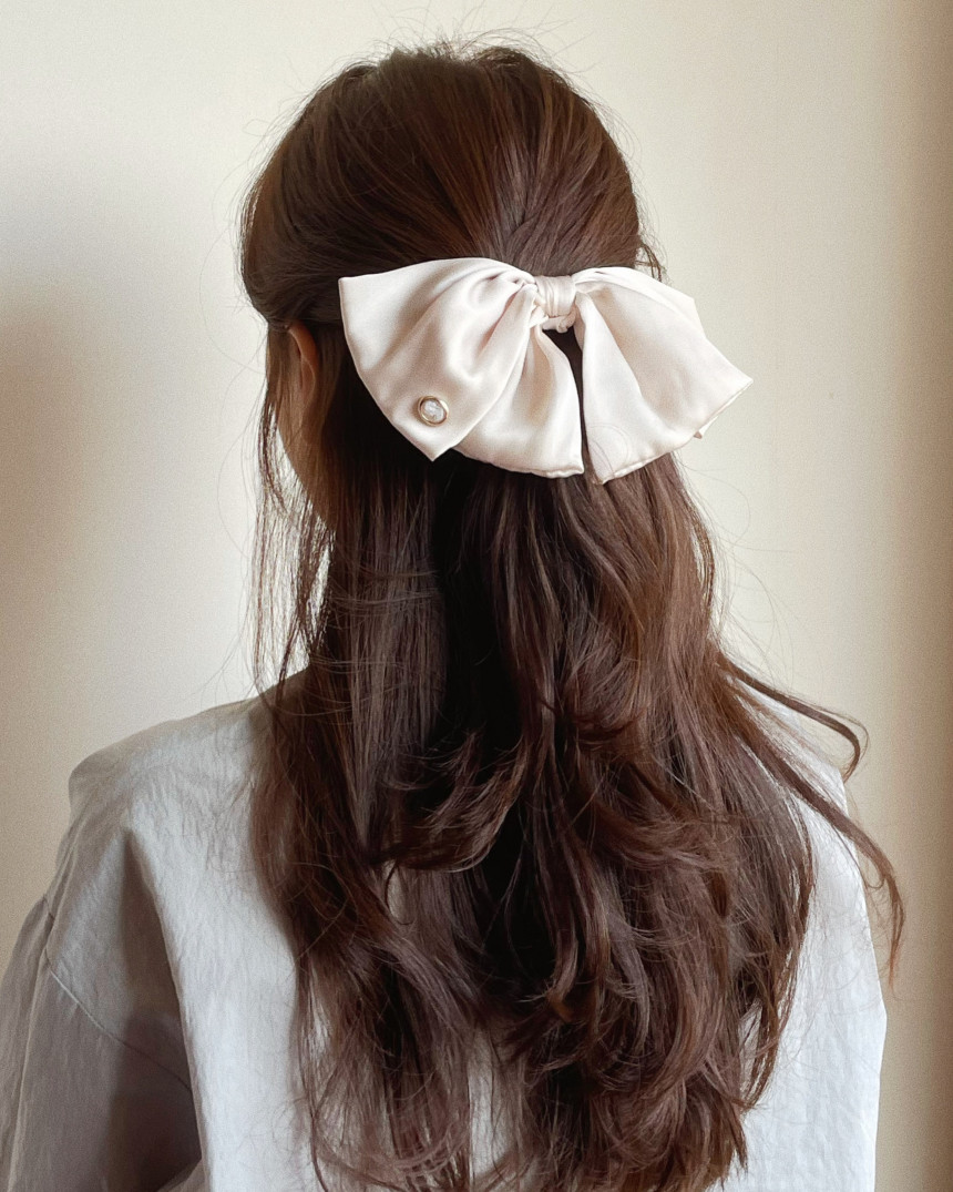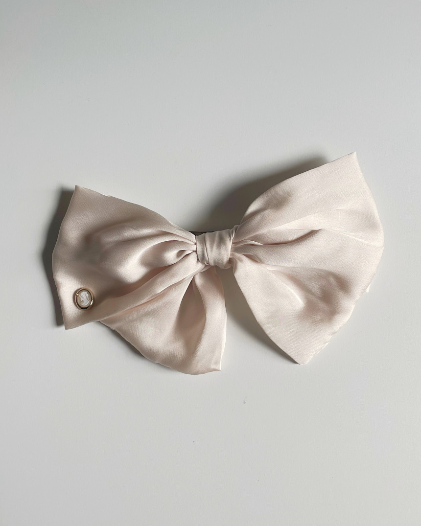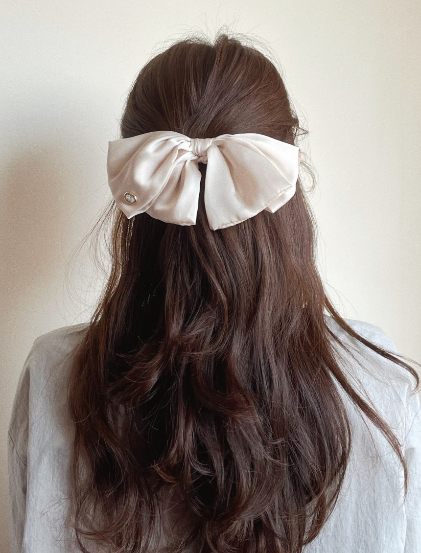 oar의 시그니처 카메오 팬던트의 새로운 빅 리본핀으로 하늘하늘한 소재의 샤틴으로 제작하여 여성스러운 빈티지한 무드를 연출하기에 매력적인 카메오 빅 러플 리본 헤어핀 입니다.