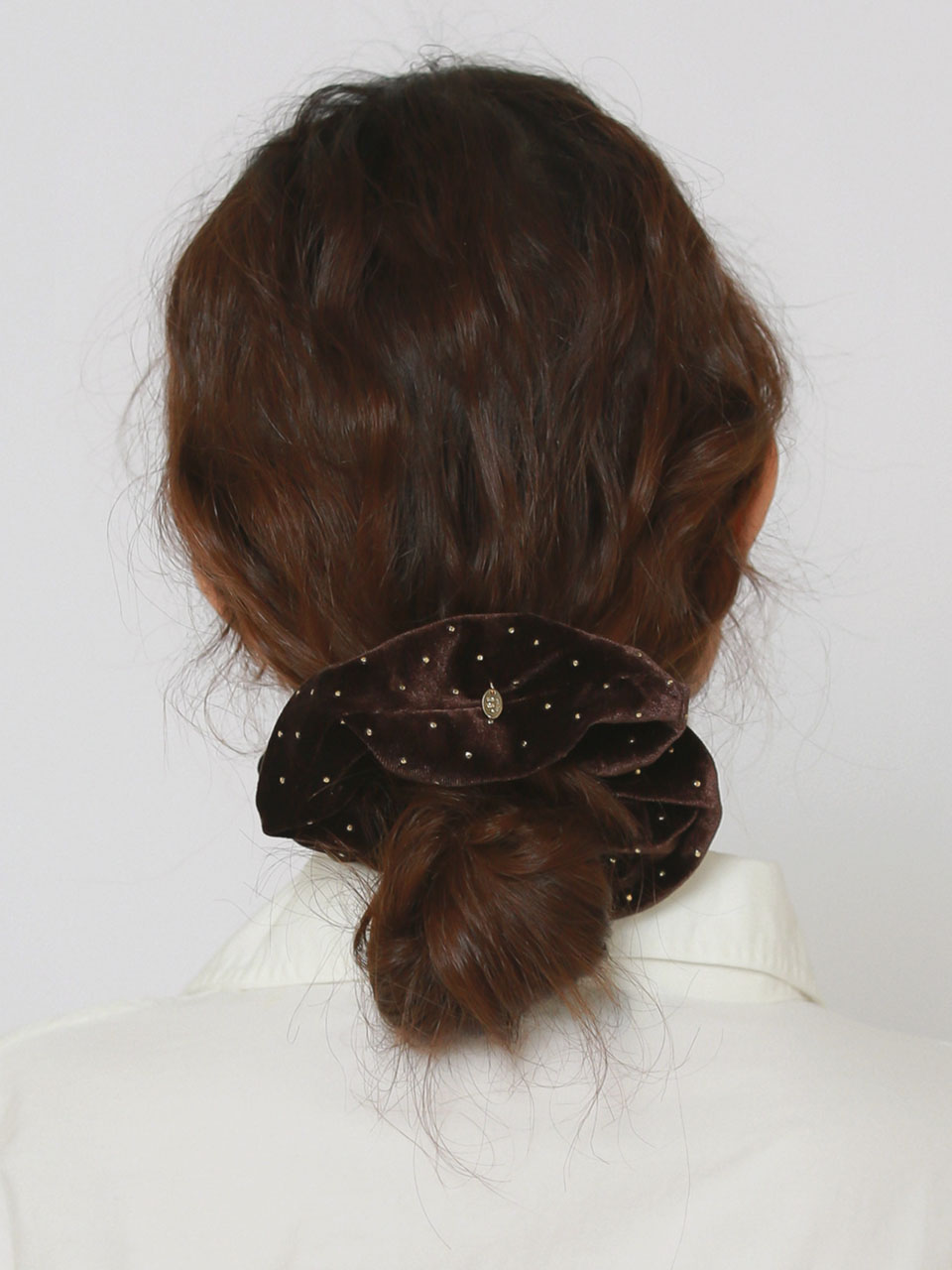 Gold Dot Velvet Volume Scrunchie [Brown]