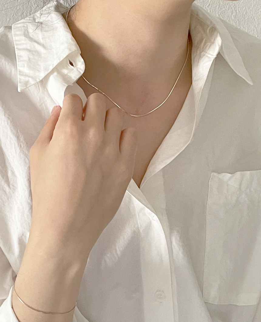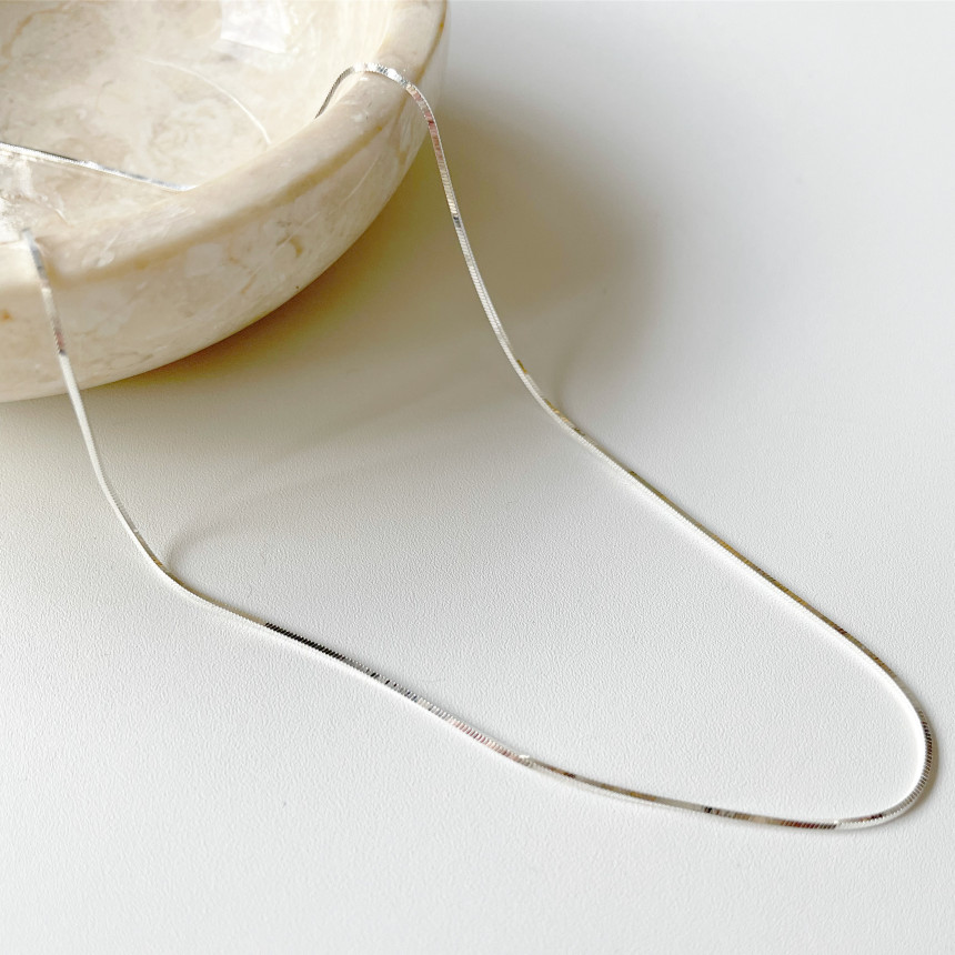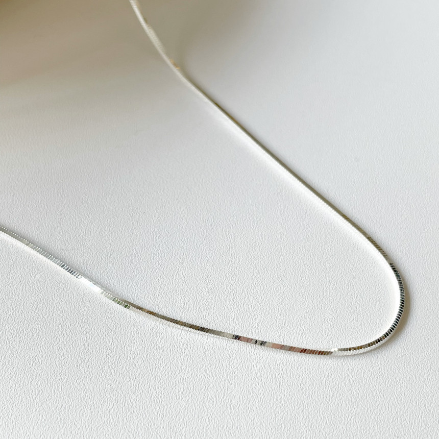 단독으로 착용하여도 예쁘고 레이어드 목걸이로도 활용할 수 있는 매력적인 실버925 사각 스네이크체인 (뱀줄) 목걸이 입니다.