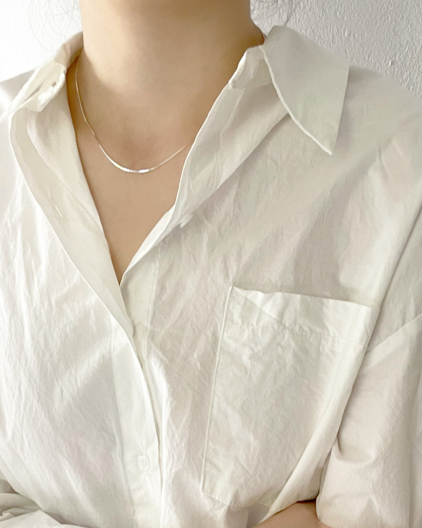 퓨어한 무드의 일반 뱀줄이 아닌 정사각형 스퀘어 형태의 심플하고 깨끗한 무드의 심플 925실버의 사각 뱀줄 목걸이 입니다.