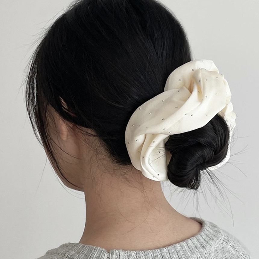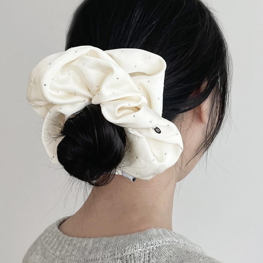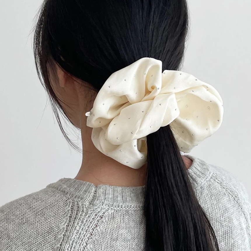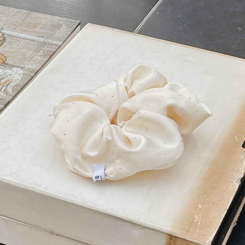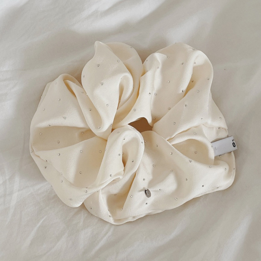 Classic Silver Dot Satin Wide Scruchie [Ivory]