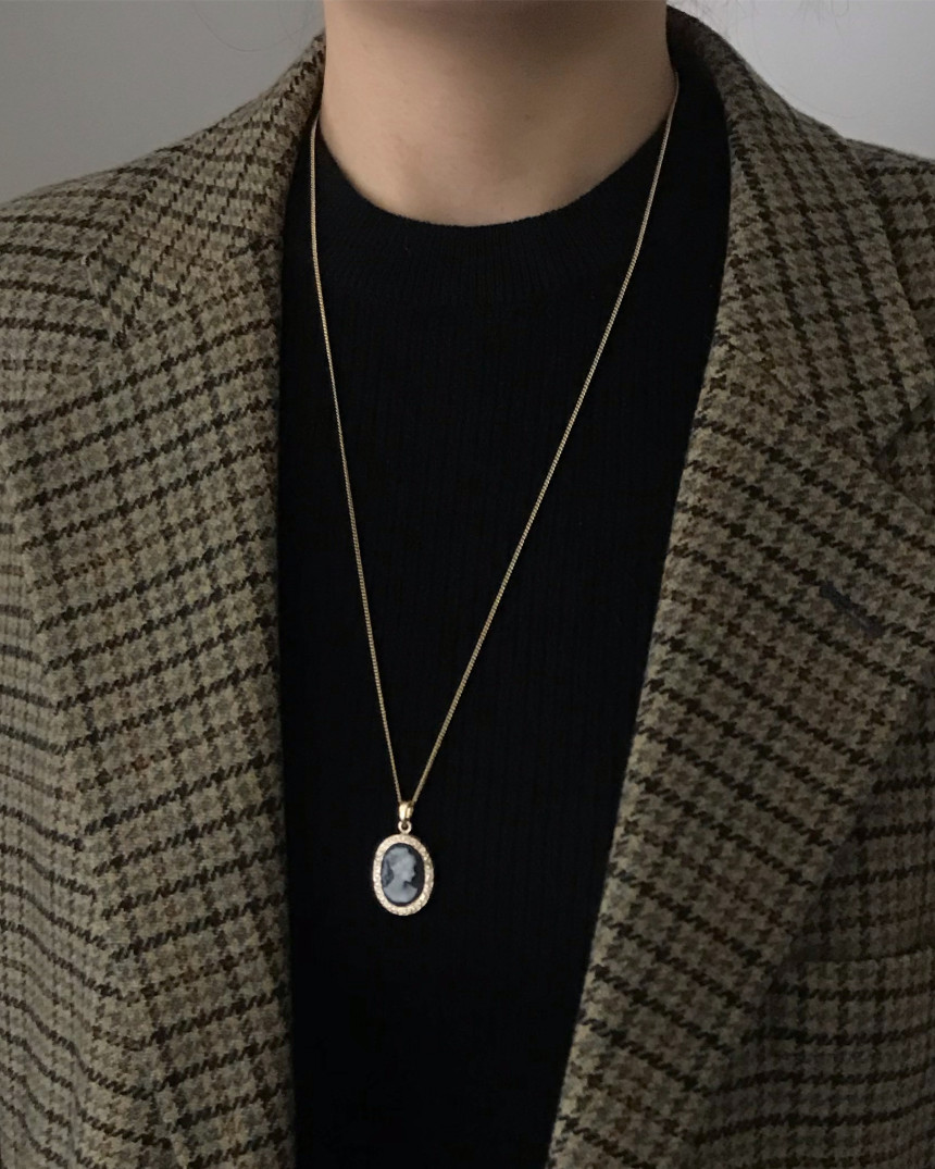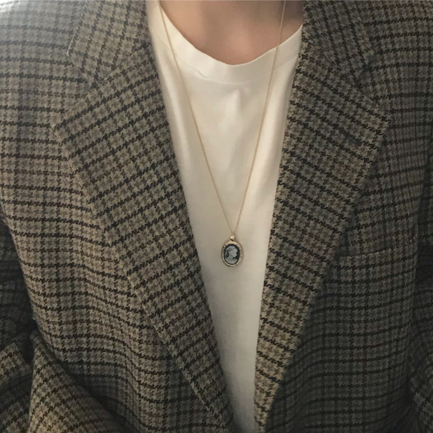 엔틱 카메오 (까메오) 롱 목걸이 [Black]