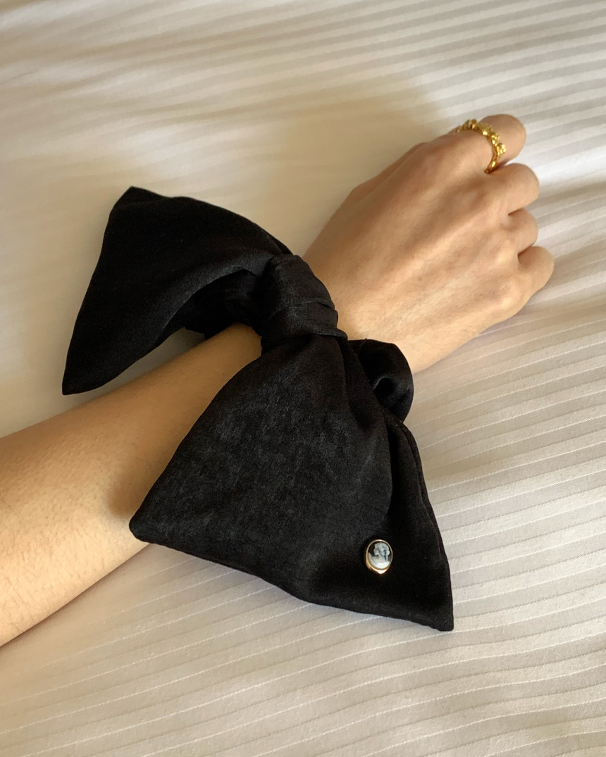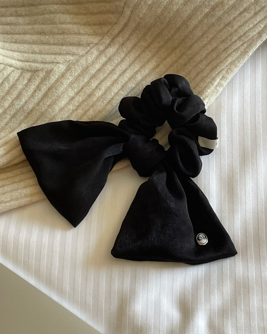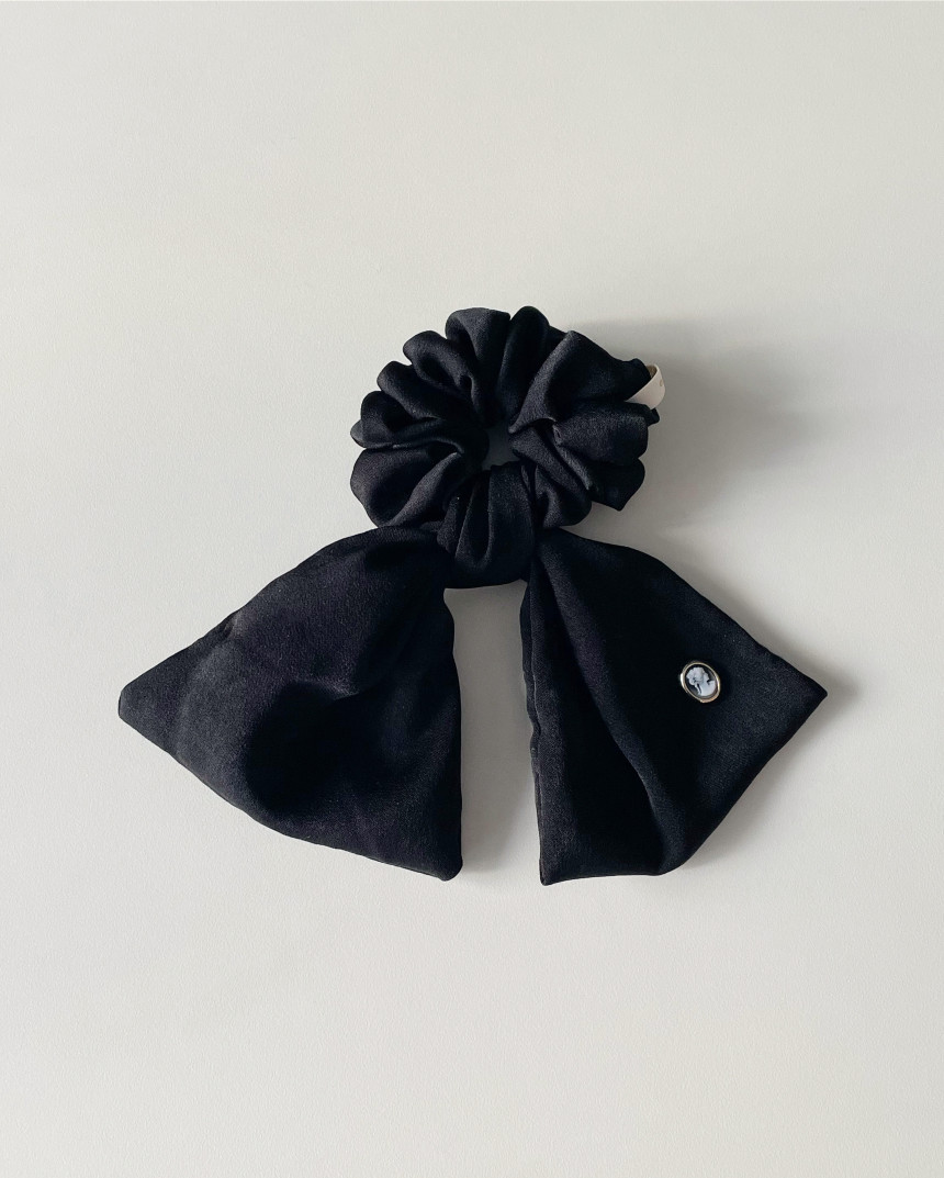 oardl 사랑하는 카메오의 빈티지하고 엔틱함을 담은 고급스러운 새틴 소재의 러플 스크런치 입니다.