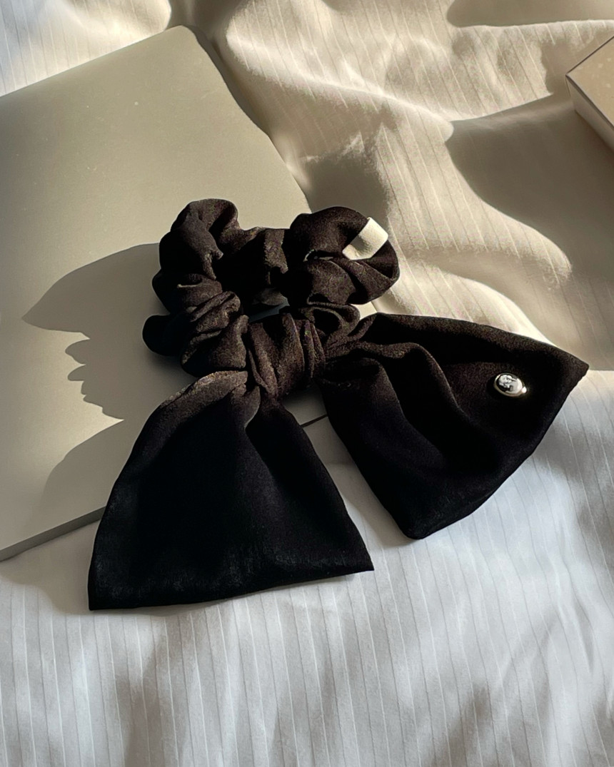 oar Cameo Satin Ruffle Scrunchie [Black]