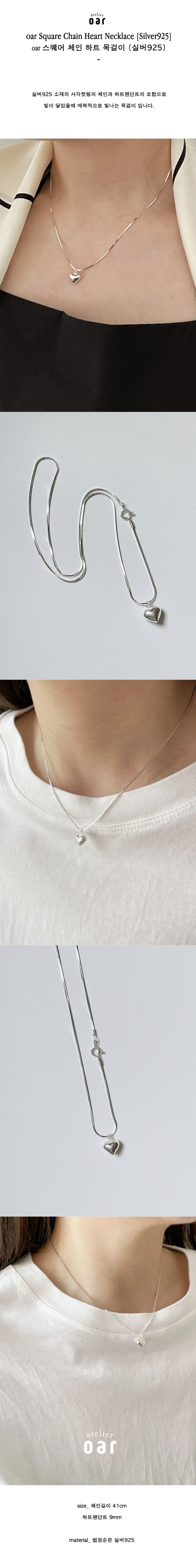 [Silver925] oar Square Chain Heart Necklace